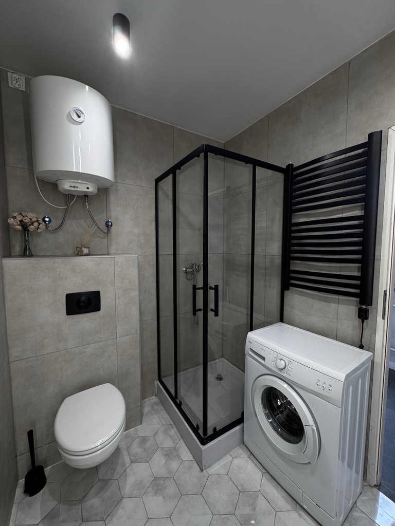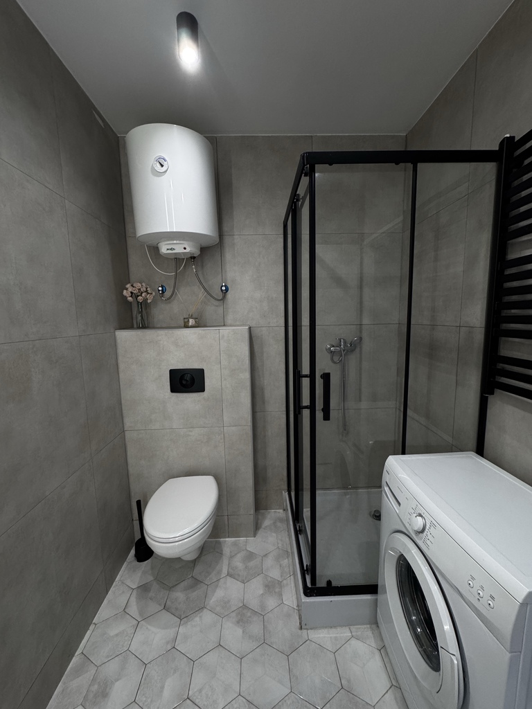 Lokal jest w pełni wyposażony. W kuchni znajduje się zabudowa meblowa, piekarnik i kuchenka elektryczna oraz bojer. W salonie ustawiono narożnik, stolik kawowy i pojemną szafę. W mieszkaniu znajduje się również router Wi-Fi. Dla najemcy przewidziano prywatne miejsce parkingowe bezpośrednio pod budynkiem.