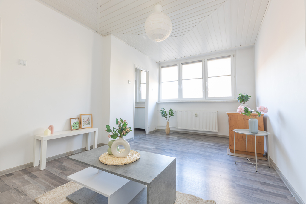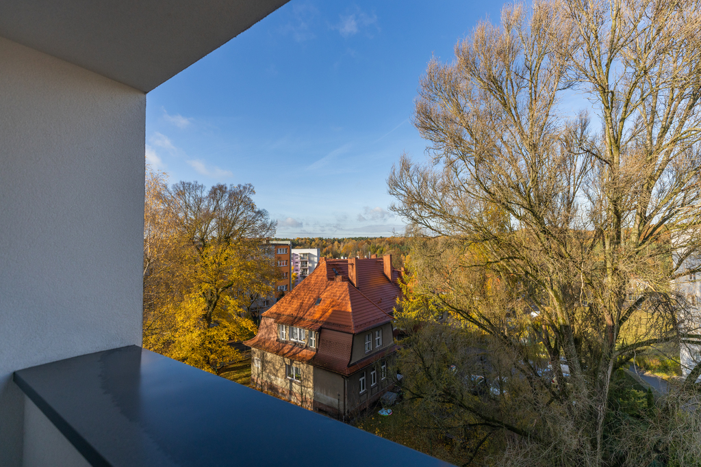 Centralnym punktem mieszkania jest salon, który z powodzeniem spełnia funkcję miejsca do rodzinnego wypoczynku. Dobrze zorganizowana kuchnia sprawi, że pomieścisz w niej wszystkie najważniejsze elementy, dodatkowo zyskując przestrzeń do gotowania. Drugi pokój z wyjściem na balkon sprawdzi się jako sypialnia. Łazienka posiadająca odpowiednią powierzchnię została wyposażona w wannę.