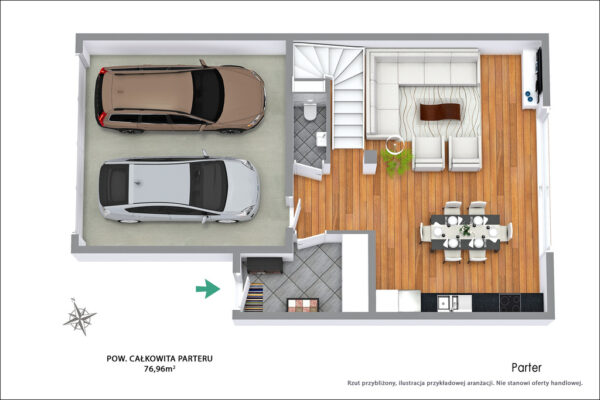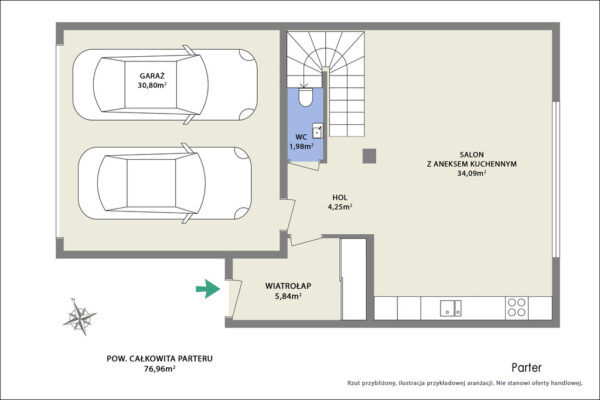 Garaż: 30,80 m2 (w bryle budynku)
