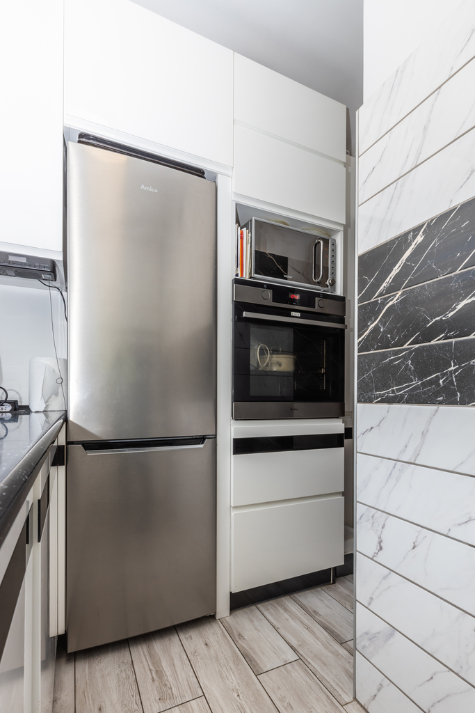 Kuchni: Meble w zabudowie, lodówka, piekarnik elektryczny, płyta gazowa, okap, zmywarka,
