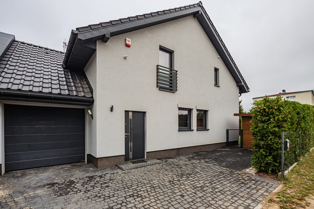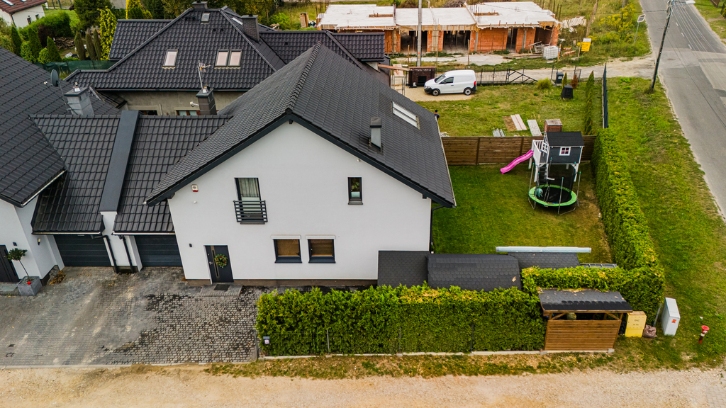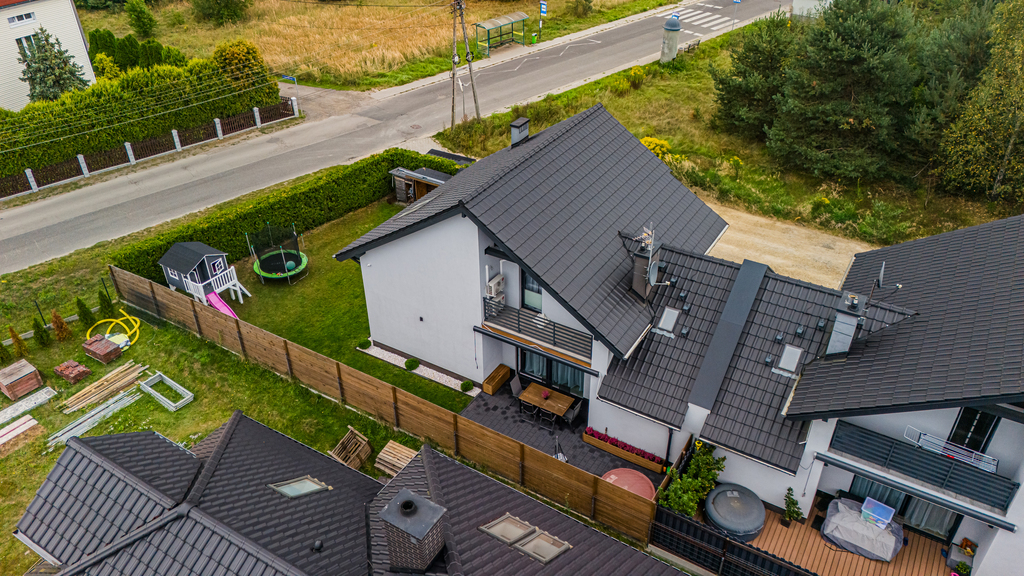 W skład nieruchomości wchodzi dom typu bliźniak wybudowany w 2019 r. z zieloną, zagospodarowaną działką o powierzchni 472 m2. Teren częściowo ogrodzony bez bramy wjazdowej,  otoczenie zapewnia ciszę i spokój.  Za zapewnienie wysokiego poczucia bezpieczeństwa Twojego i Twojej Rodziny odpowiada system alarmowy Genevo, system kamer zewnętrznych i miłe sąsiedztwo.