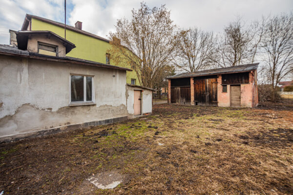 Na sprzedaż nieruchomość gruntowa zabudowana. W skład nieruchomości wchodzi budynek mieszkalny, budynek gospodarczy, szopa i działka o powierzchni 781 m2. Do nieruchomości prowadzi wygodna, asfaltowa droga a teren jest ogrodzony. Otoczenie to przede wszystkim jednorodzinna zabudowa mieszkalna.