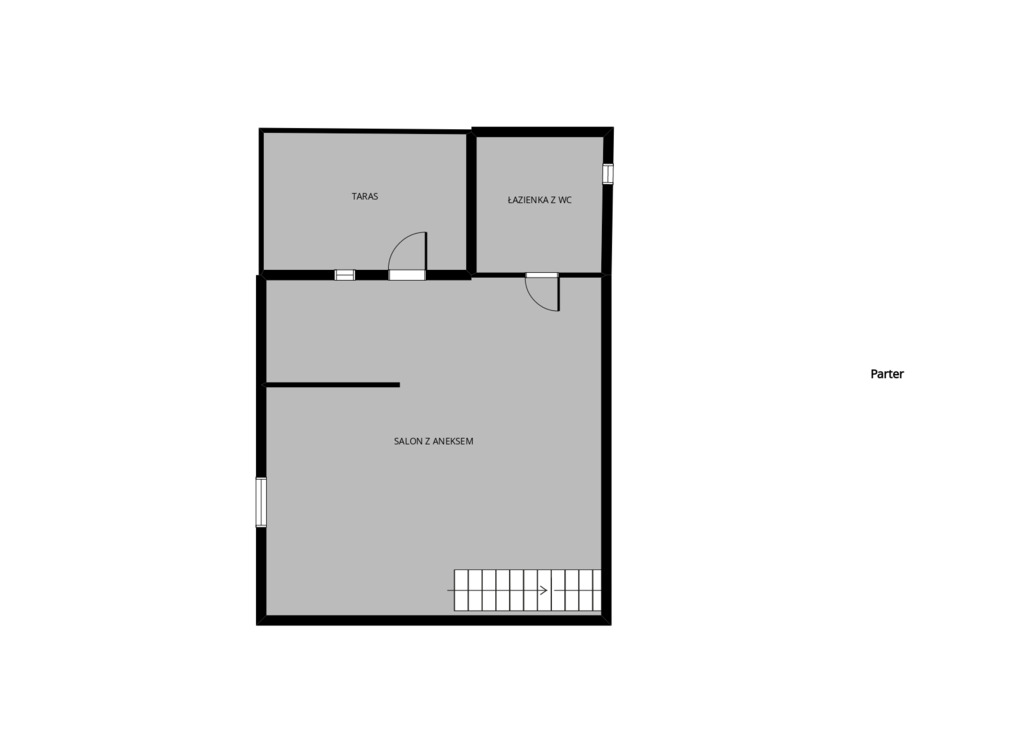 Parter – 24,96 m2 – składa się z salonu, kuchni oraz łazienki z wc.