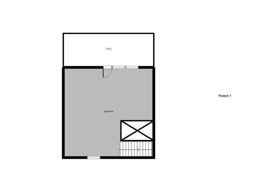 1 piętro – 20,85 m2 – sypialnia z wyjściem na taras oraz wejściem na poziom 2