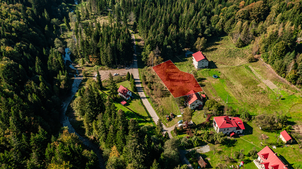 Na sprzedaż działka budowlana o łącznej powierzchni 1176 m2. Dzięki swojej atrakcyjnej lokalizacji w otoczeniu terenów leśnych, gór i rzeki będzie idealnym miejscem do życia i wypoczynku dla Ciebie i Twojej rodziny.