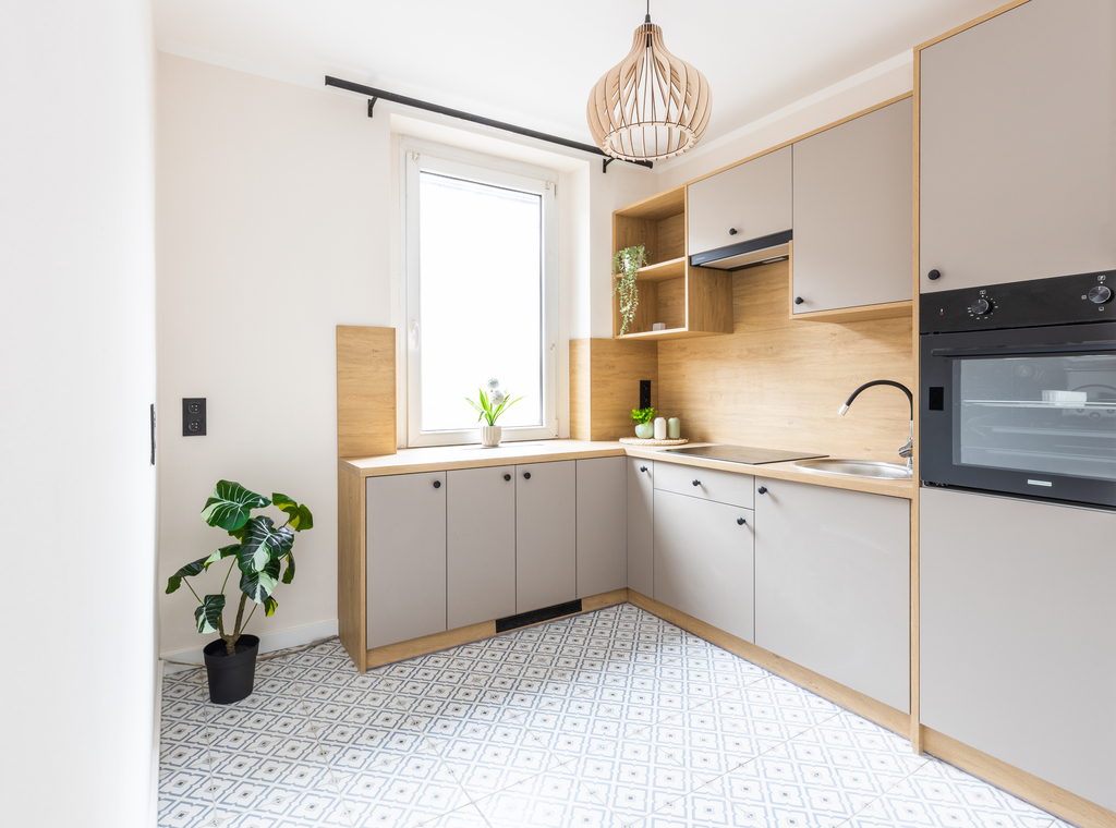 meble w zabudowie kuchennej, zlewozmywak, piekarnik elektryczny w zabudowie, płyta indukcyjna, okap