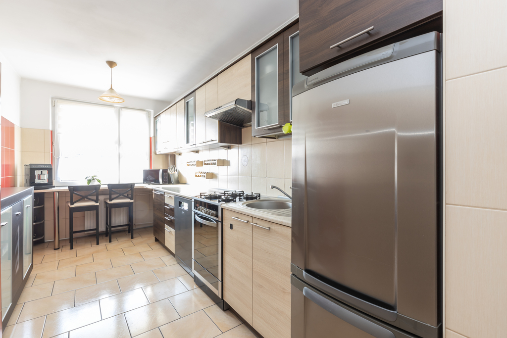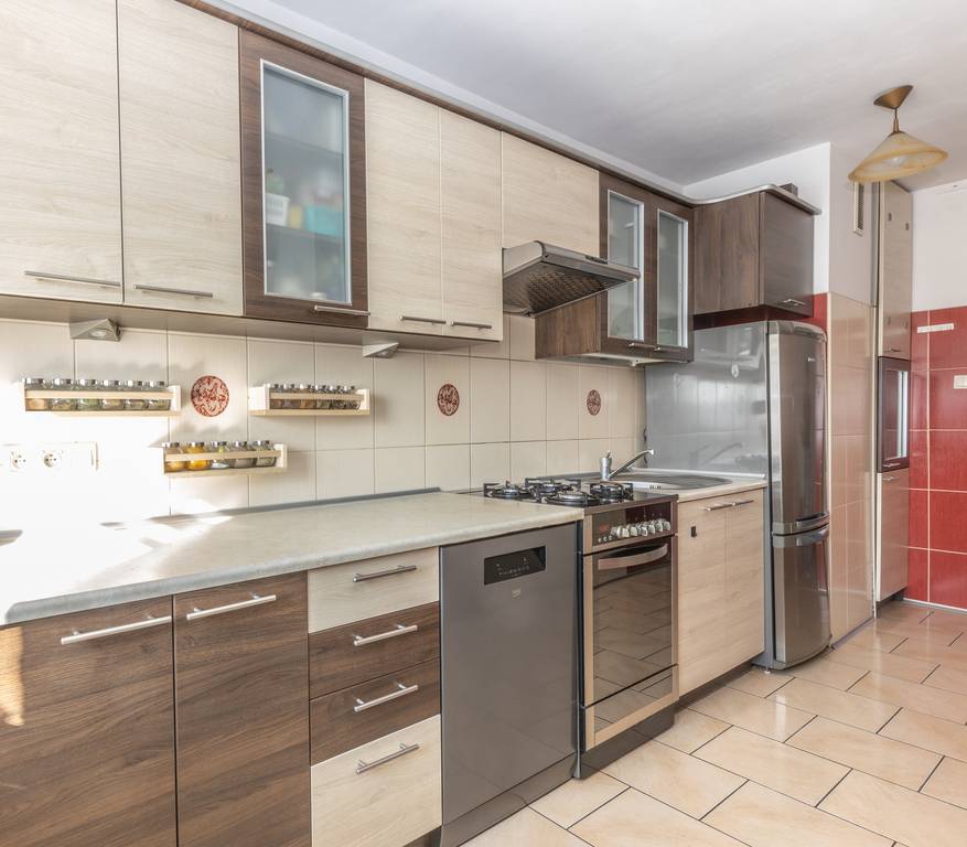 kuchnia z zabudowanymi szafkami, które pomieszczą wszystkie potrzebne rzeczy, ułatwia