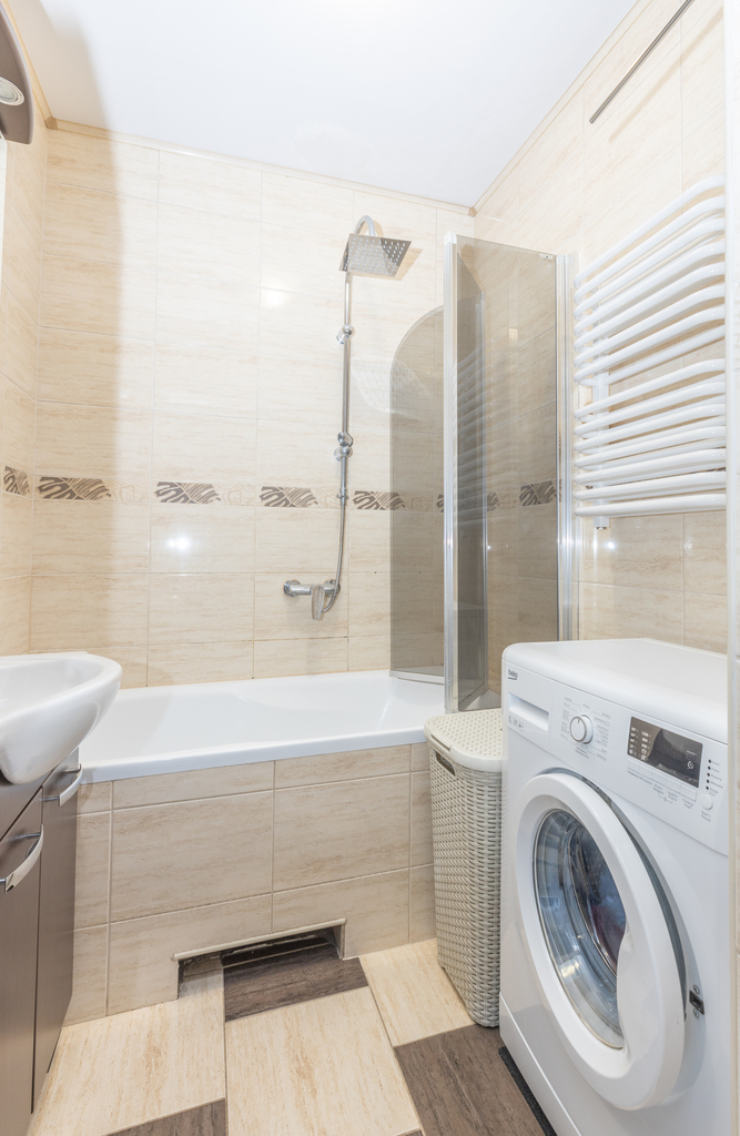 jako sypialnie lub pokoje dla dzieci. Łazienka wyposażona została w wannę z dodatkową