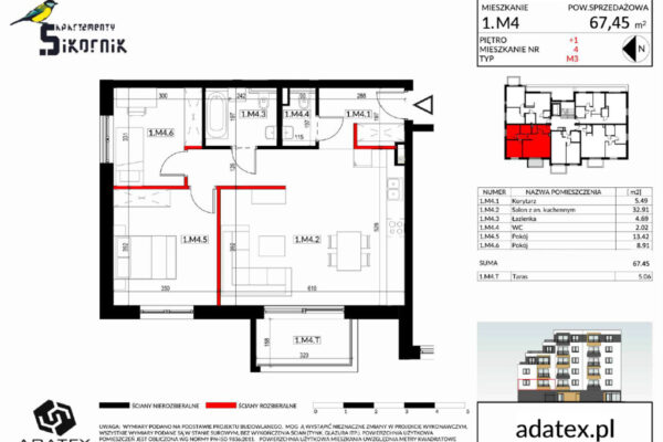 Powierzchnia mieszkalna: 67,45 m2