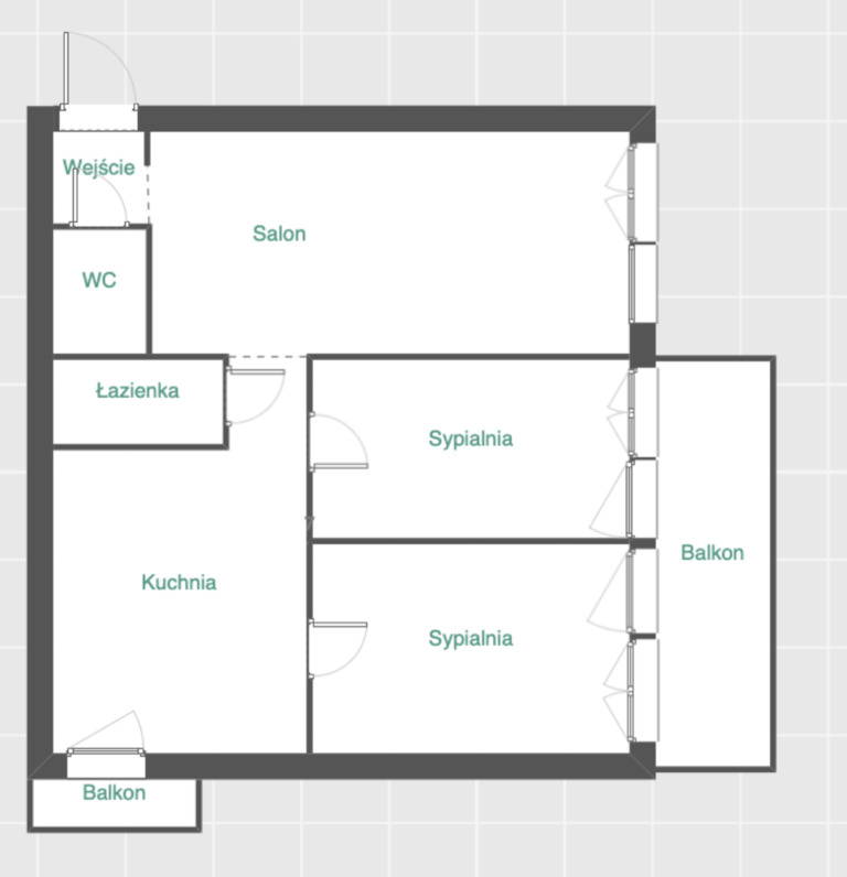 Balkon: tak x 2 – wyjście na balkon z obu sypialni, ekspozycja zachodnia. Drugi balkon z ekspozycją na północ – na balkonie stoi agregat od klimatyzacji.
