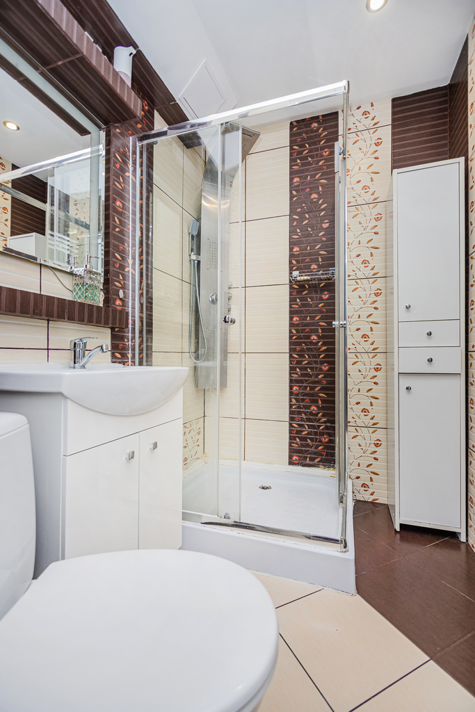 – łazienka – kabina prysznicowa, szafka z umywalką, WC, szafka wolnostojąca.