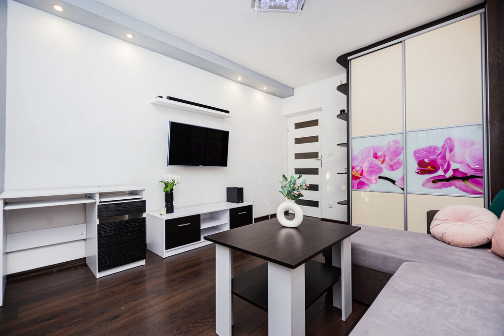 Wygodne mieszkanie z pełnym wyposażeniem. Dzięki lokalizacji jest to wygodne miejsce do życia.