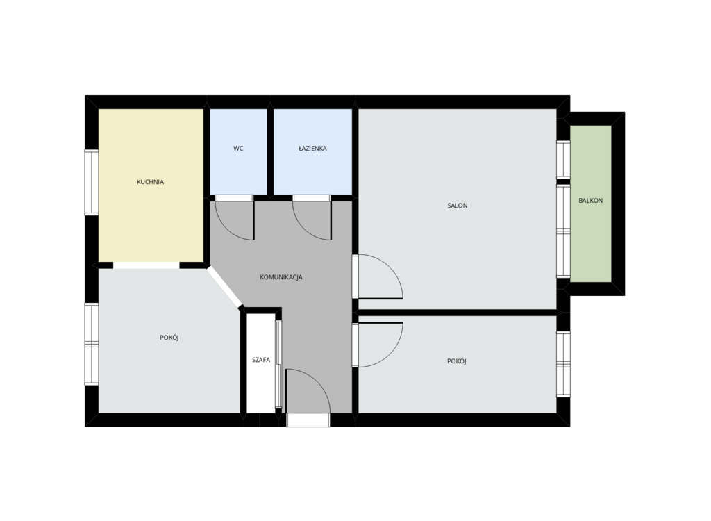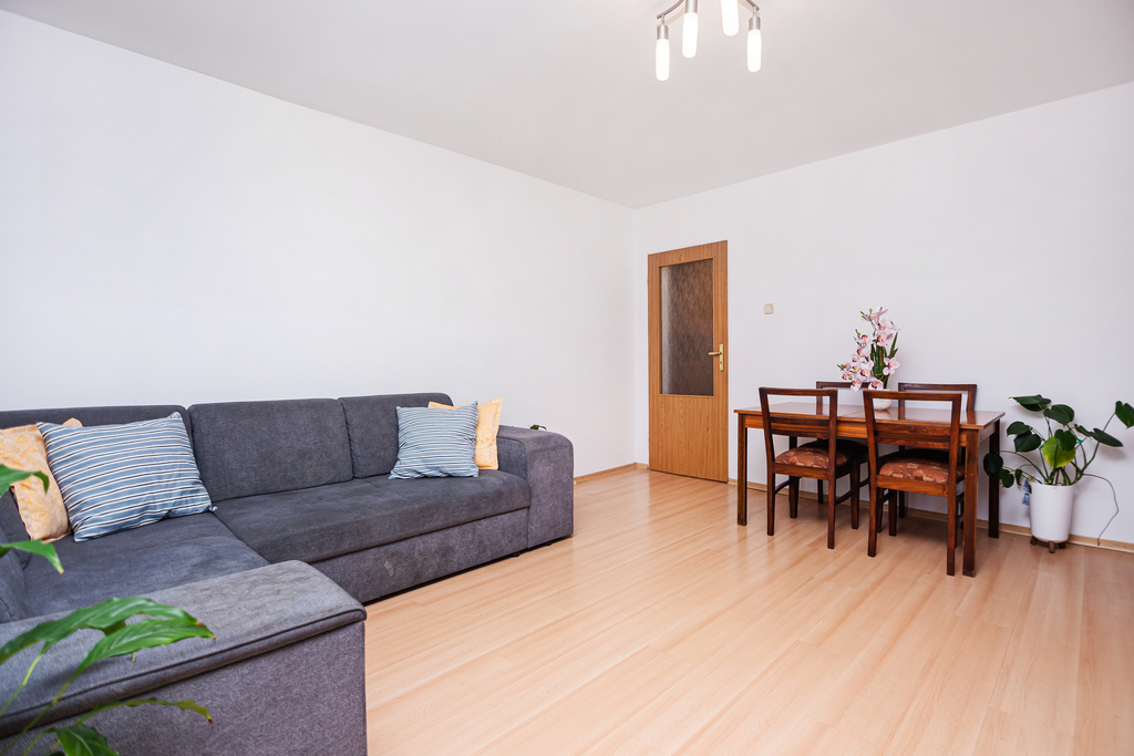 Centralnym punktem mieszkania jest salon z wyjściem na duży balkon, który z powodzeniem spełnia funkcję miejsca do rodzinnego wypoczynku. Dobrze zorganizowana kuchnia sprawi, że pomieścisz w niej wszystkie najważniejsze elementy, dodatkowo zyskując dużo przestrzeni do gotowania. Ustawne dwa pokoje, zaaranżujesz dokładnie tak, jak sobie życzysz urządzając np. sypialnie i pokój dziecięcy. Łazienka posiadająca odpowiednią powierzchnię została wyposażona w kabinę prysznicową. Dodatkowym atutem jest osobne WC, które doskonale się sprawdza przy większej ilości domowników. Przestronny przedpokój pomieścił dużą zabudowaną szafę.