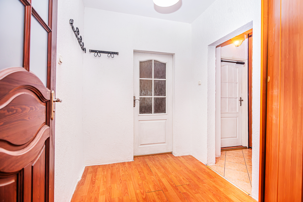 Mieszkanie dzięki układowi pomieszczeń zyskuje na funkcjonalności i pozwoli na dowolną aranżację. Nieruchomość w obecnym stanie jest zadbana. Na podłogach położone są płytki i panele. Pomieszczenia wymagają odświeżenia.