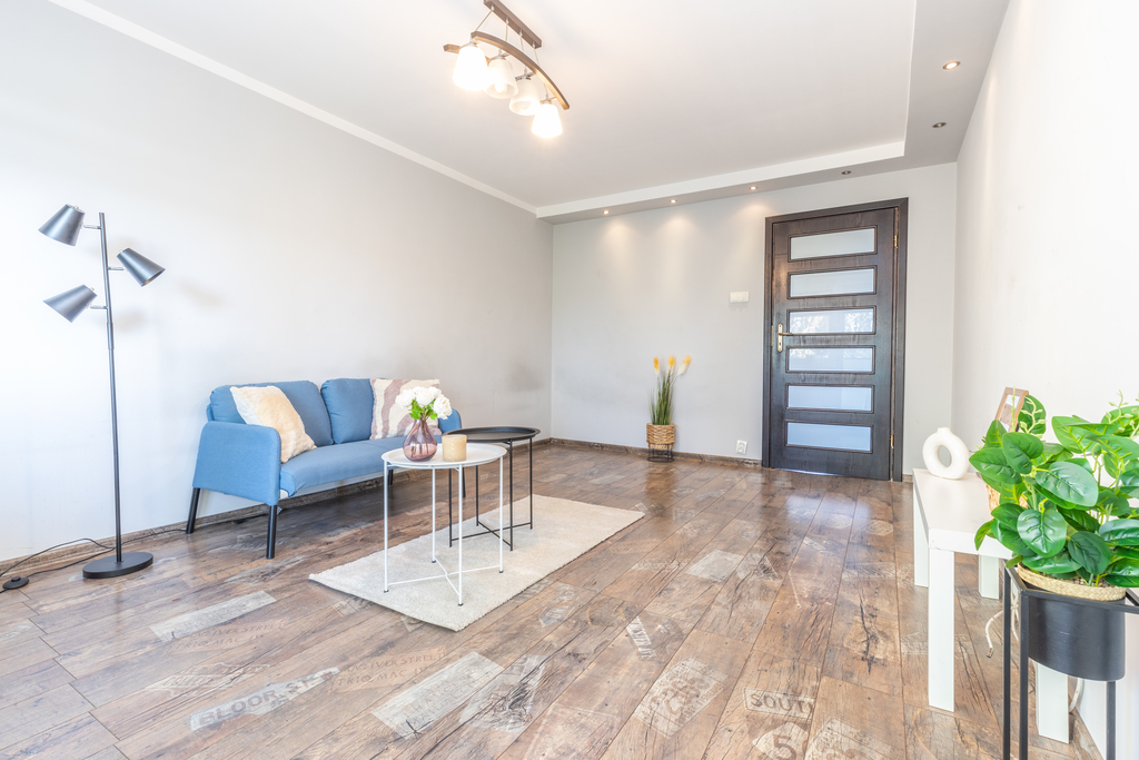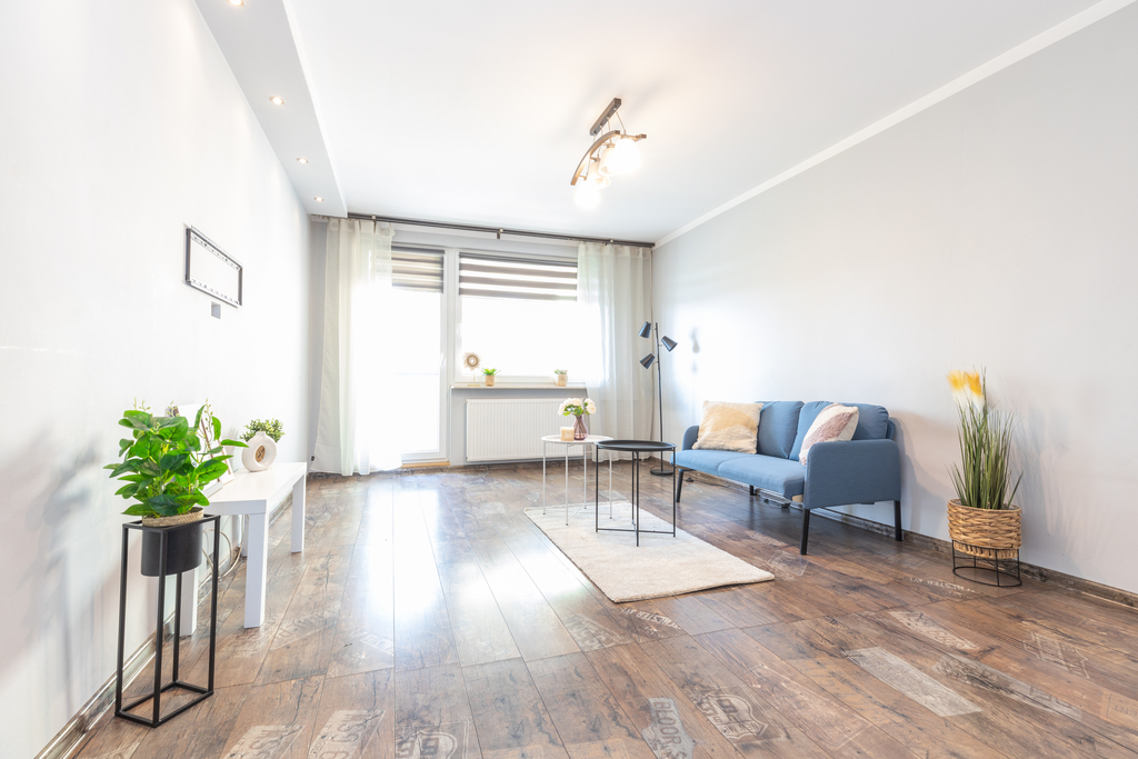 Centralnym punktem mieszkania jest salon z wyjściem na balkon, który z powodzeniem spełnia funkcję miejsca do rodzinnego wypoczynku. Przestronna i dobrze zorganizowana kuchnia sprawi, że pomieścisz w niej wszystkie najważniejsze elementy, dodatkowo zyskując dużo przestrzeni do gotowania i spożywania posiłków. Ustawne dwa pokoje, zaaranżujesz dokładnie tak, jak sobie życzysz urządzając np. sypialnie i pokój dziecięcy. Łazienka posiadająca odpowiednią powierzchnię została wyposażona w kabinę prysznicową. Dodatkowym atutem jest osobne WC, wygodne rozwiązane przy większej ilości domowników. Duży przedpokój z zabudowaną szafą to kolejne funkcjonalne pomieszczenie, dzięki któremu z łatwością zorganizujesz wszystkie niezbędne rzeczy.
