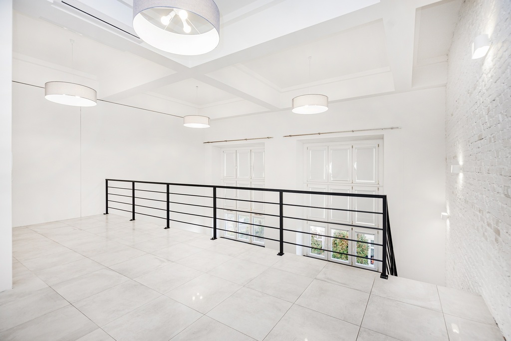 Dwie kondygnacje o łącznej powierzchni 198,88 m2 w obecnym układzie uwzględniają okazały open space z otwartą kuchnią, antresole oraz 4 niezależne pokoje, garderoba i 4 łazienki.