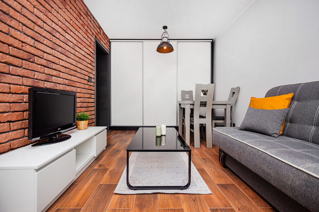– salonu- szafka RTV, telewizor, kanapa, szafa, stół z krzesłami, stolik kawowy