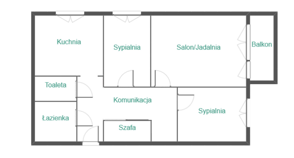 ( Rzut patrz zdjęcie nr 9 )Centralnym punktem mieszkania jest jasny salon z wyjściem na balkon. Dobrze zorganizowana kuchnia sprawi, że pomieścisz w niej wszystkie najważniejsze elementy, dodatkowo zyskując dużo przestrzeni do gotowania. Dwa dodatkowe pokoje, zaaranżujesz dokładnie tak, jak sobie życzysz urządzając np. sypialnię i pokój dziecka. Łazienka posiadająca odpowiednią powierzchnię została wyposażona w wannę. Dodatkowym atutem jest osobne WC, doskonałe rozwiązanie przy większej ilości domowników. Z powodzeniem zorganizujesz również wszystkie niezbędne rzeczy, dzięki komunikacji, która pomieści pojemne szafy.