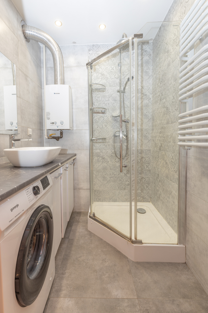łazienki i WC -kabina prysznicowa, lustro, umywalka z szafką, WC podtynkowe
