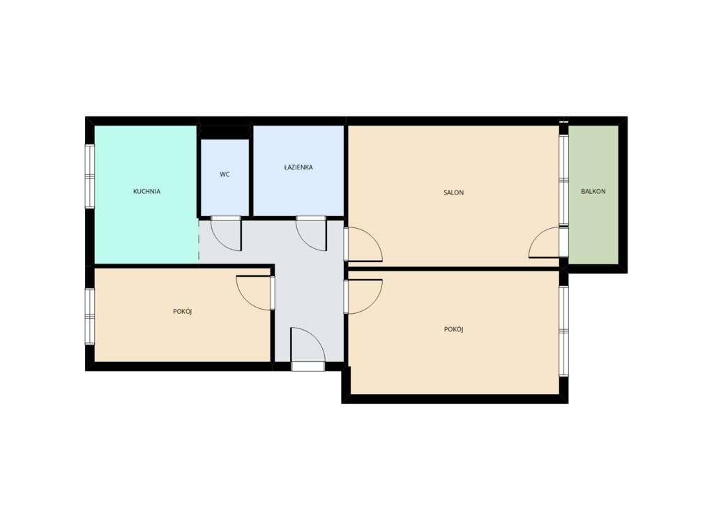 Centralnym punktem nieruchomości jest przestronny, jasny salon z wyjściem na balkon. Duża kuchnia pomieściła wszystkie niezbędne rzeczy, pozostawiając przestrzeń na przygotowanie i spożywanie posiłków. Dodatkowe dwa pokoje, zaaranżujesz dokładnie tak, jak sobie życzysz urządzając np. sypialnie i pokój dziecięcy. Łazienka posiadająca odpowiednią powierzchnię została wyposażona w kabinę prysznicową. Dodatkowym atutem jest osobne WC. Ustawny przedpokój pomieści szafę w zabudowie.