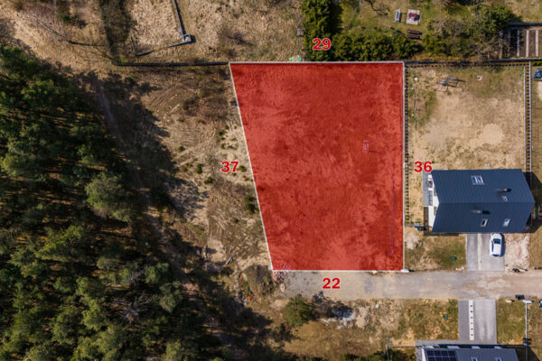 Wymiary działki: ok 38 m na 29 m.