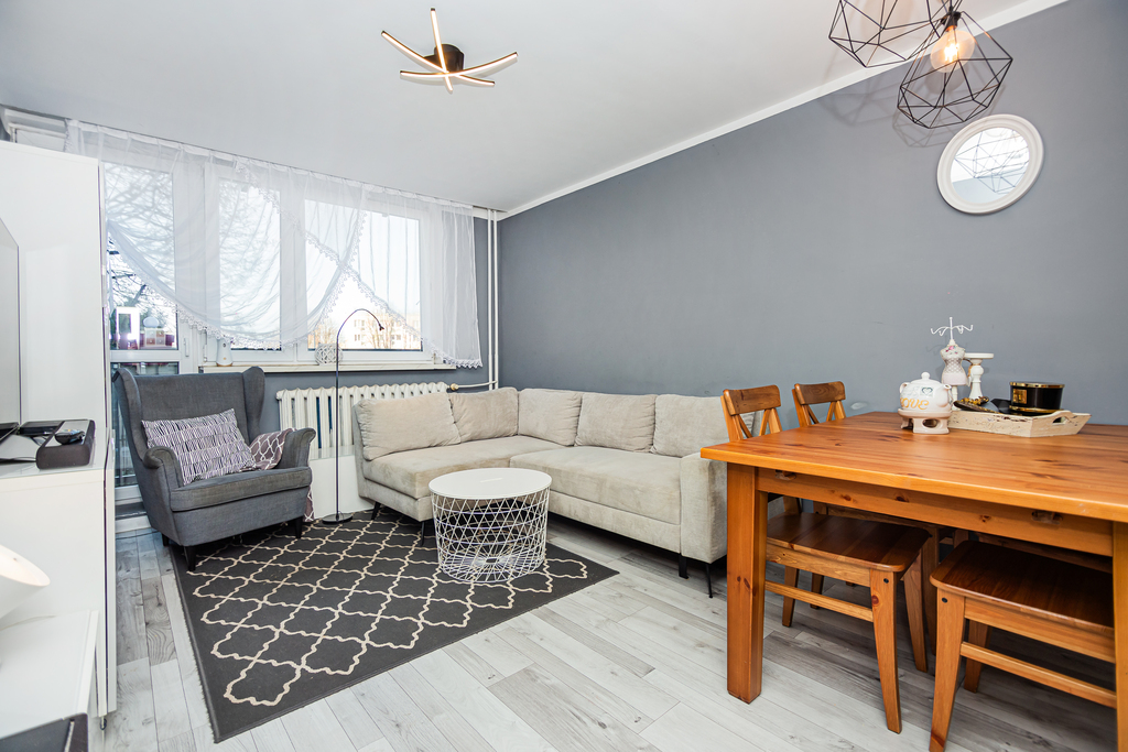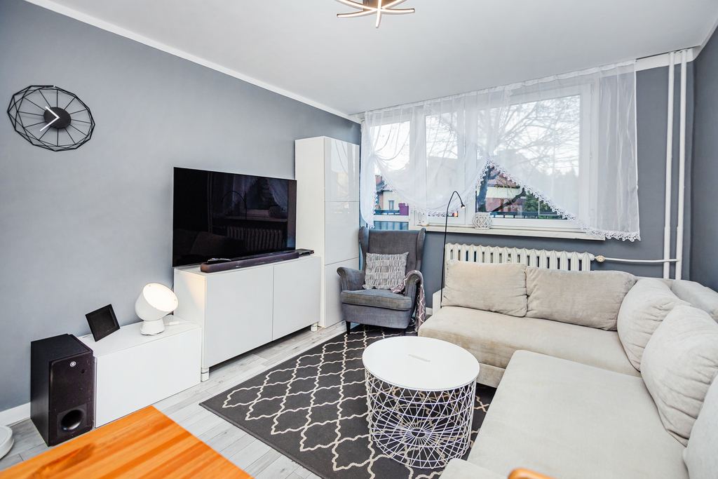 Nieruchomość jest zadbana, dzięki czemu oszczędzasz na remoncie. Jej funkcjonalny układ pozwoli Ci na idealne dostosowanie do swoich potrzeb lub jeśli wolisz przygotowanie pod wynajem. Mieszkanie zostało wykończone w 2018/2019 r. –  wymienione zostały drzwi wewnętrzne i zewnętrzne, położono panele, na ścianach zrobiono gładzie i wykończono kuchnię. Ostatnie prace przeprowadzone w 2022 r. obejmowały modernizację łazienki – wymieniono armaturę (kabinę i umywalkę).