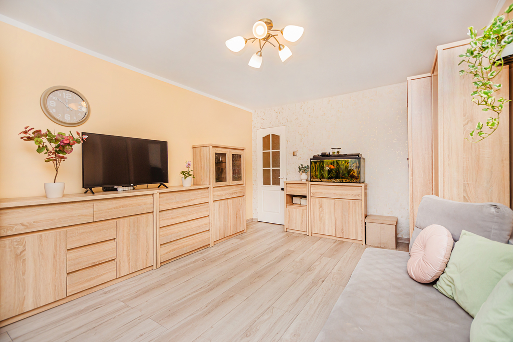 W mieszkaniu ostatnie prace remontowe były realizowane w 2019 r. i uwzględniały – położenie paneli (salon, kuchnia przedpokój) , położenie gładzi oraz wymianę zabudowy kuchennej. Dodatkowe dwa pokoje są do odświeżenia/częściowego remontu.