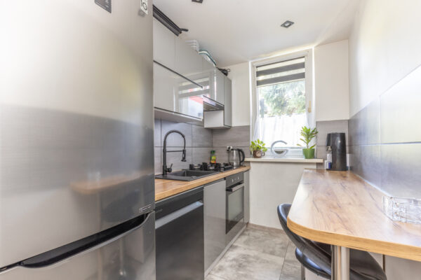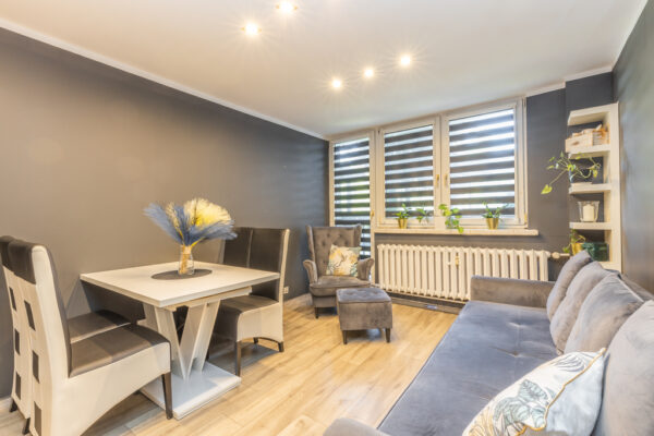 w 2021 roku, mieszkanie przeszło remont generalny w skład którego wchodziły prace takie jak: Wymiana instalacji elektrycznej, wodno kanalizacyjnej(nowe piony), wykonanie podwieszanych sufitów z płyt GK, wyrównanie ścian płytami GK, nowe panele w pokojach oraz gresy w kuchni, przedpokoju i łazience. Wykonanie gresów w łazience na wszystkich ścianach, montaż przestronnej kabiny prysznicowej o wymiarach 90×90 oraz wykonanie zabudowy przez stolarza w kuchni oraz szafy w przedpokoju.