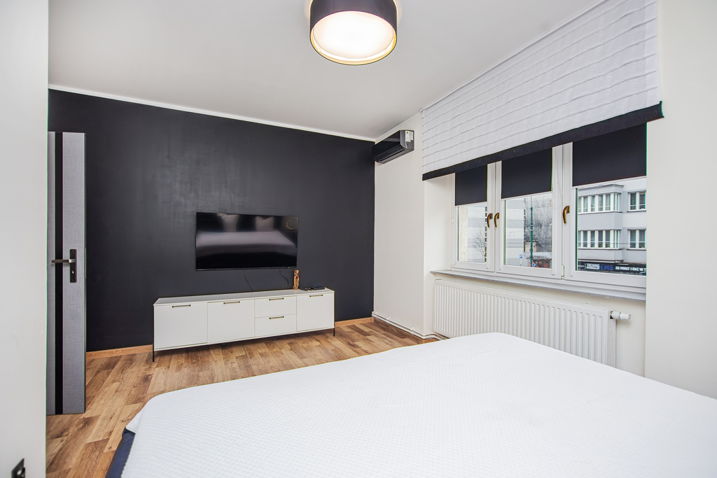 – sypialnia – łóżko małżeńskie 200×200, Szafka, klimatyzacja