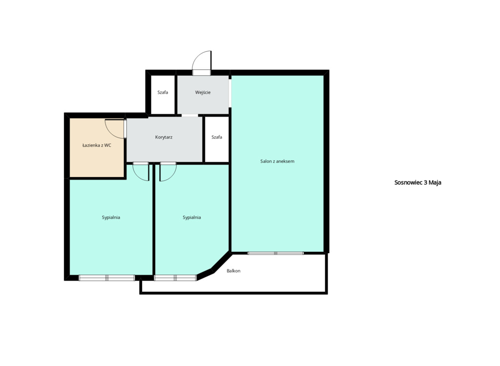 (Rzut pomieszczeń zdjęcie nr 15) Centralnym punktem mieszkania jest przestronny salon połączony z kuchnią. Otwarta przestrzeń to wygodne rozwiązanie na połączenie strefy wypoczynku z miejscem do przyrządzania i spożywania posiłków. Dwa przestronne dodatkowe pokoje idealnie sprawdzą się jako sypialnia i np. pokój dziecięcy. Komfortowa łazienka posiada prysznic.Komunikacja – przedpokój posiada zabudowaną szafę, dzięki czemu zyskujesz miejsce na wszystkie niezbędne rzeczy oraz dodatkowe miejsce do wykonania kolejnej szafy w zabudowie.
