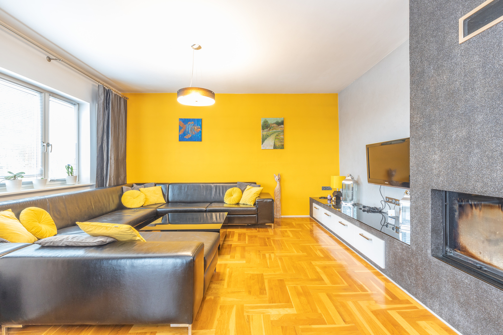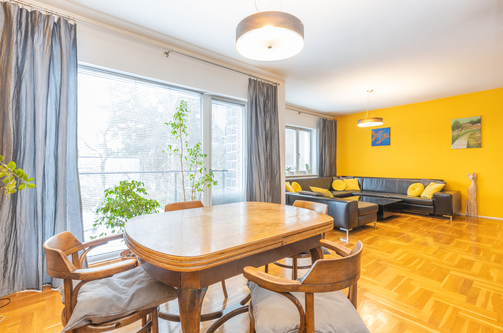 W PEŁNI FUNKCJONALNY UKŁAD, przestronne i jasne pomieszczenia, dzięki dużym przeszkleniom.