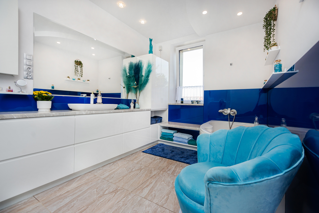 •Łazienka główna z WC, kabiną prysznicową i wanną