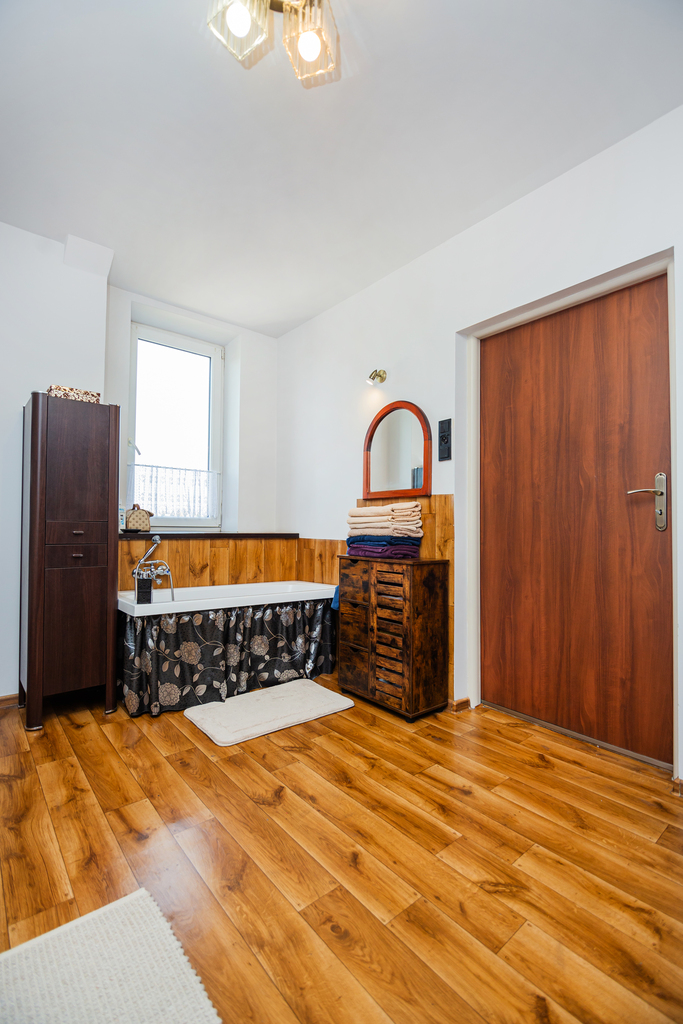 Dom jest zadbany, dzięki czemu zaoszczędzisz na remoncie i zamieszkasz od razu po zakupie. Budynek przeszedł modernizację z zewnątrz i wewnątrz (prace w latach od 2013 do 2024). Na ścianach gładzie, sufity podwieszone, na podłogach parkiet drewniany, panele oraz płytki. W cenie otrzmujesz wyposażenie w tzw. zabudowie kuchni i łazienek.