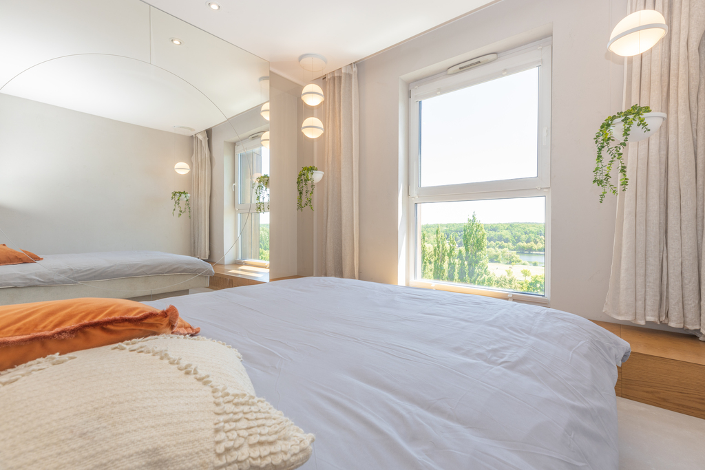 Sypialni – łóżko z materacem, drzwi szklane z funkcją przyciemnienia